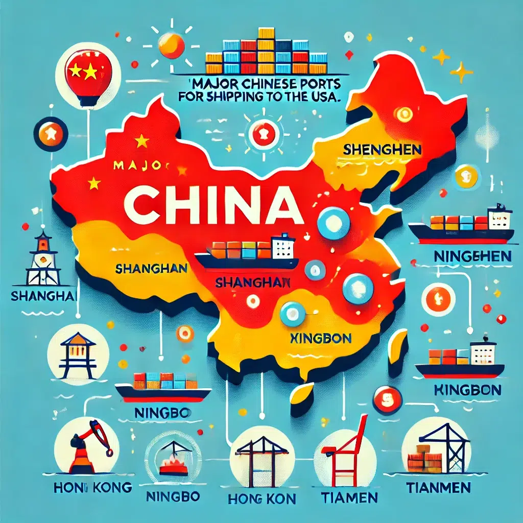 Η ναυτιλία από την Κίνα στις ΗΠΑ ξεκινά συχνά σε μερικά από τα πιο πολυσύχναστα λιμάνια του κόσμου, που βρίσκονται σε οικονομικά σημαντικές παράκτιες πόλεις.