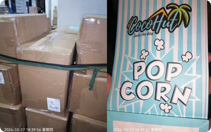 - De Carga:21 cajas de bolsas de papel para palomitas de maíz