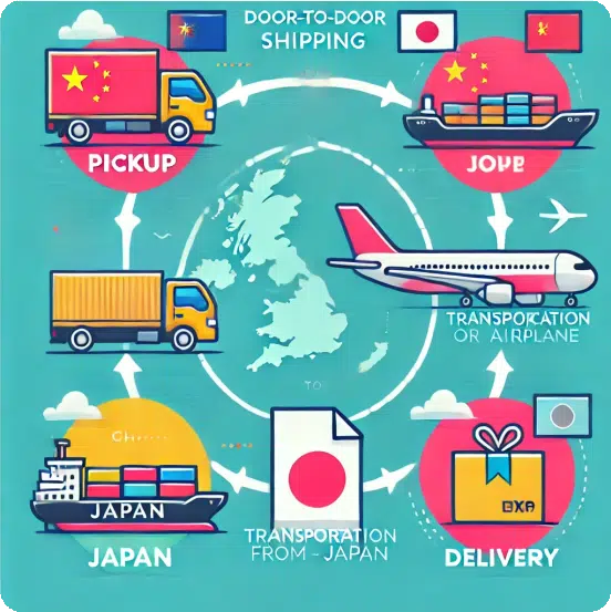 Toimitus ovelta ovelle Kiinasta Japaniin