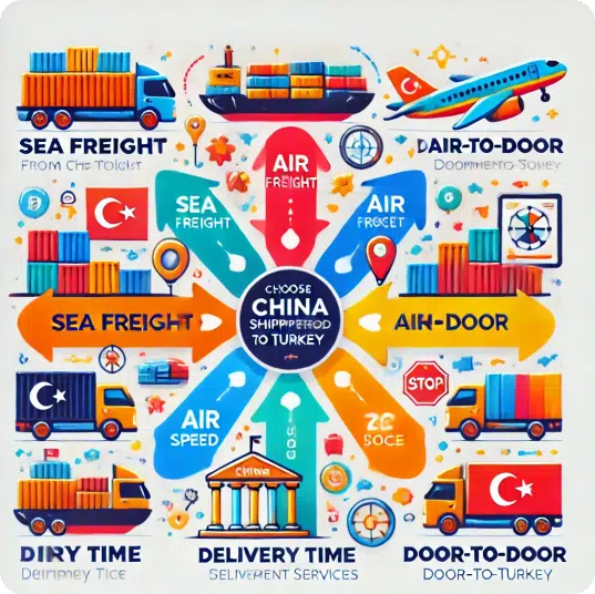 चीन से तुर्की तक शिपिंग: समुद्र, वायु, डोर-टू-डोर और सीमा शुल्क के लिए एक व्यापक गाइड